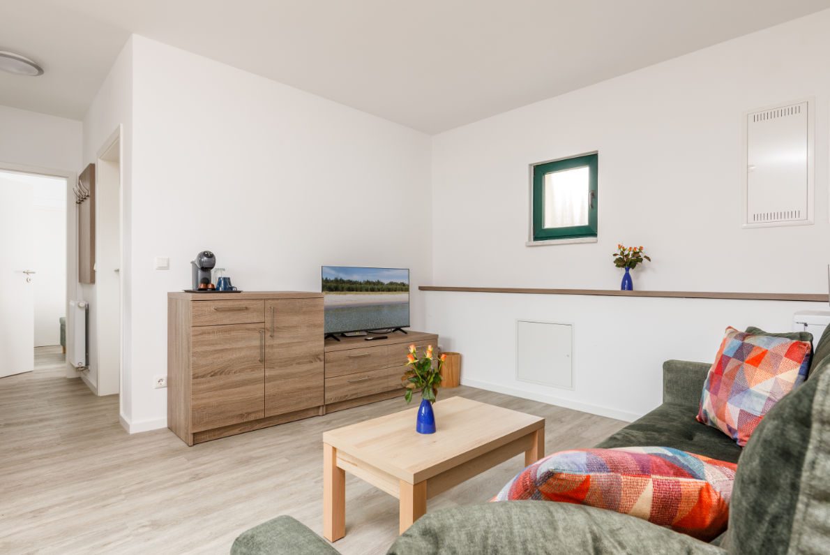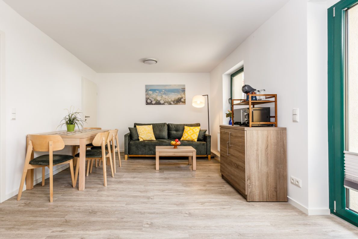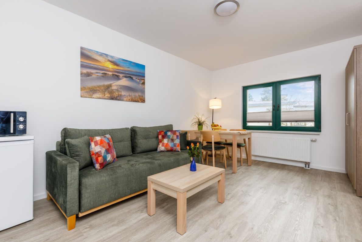 Unser Feriendorf mit 43 Apartments in 10 Ferienhäusern liegt nur ca. 50 Meter vom feinsandigen Ostseestrand Rügens entfernt – perfekt für Familien mit Kindern.